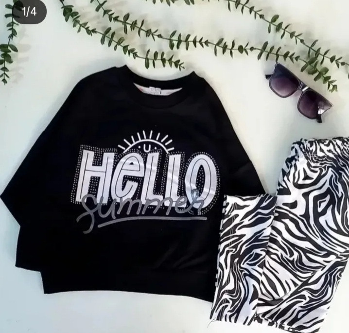 ست کراپ شلوار دخترانه هلو گورخری