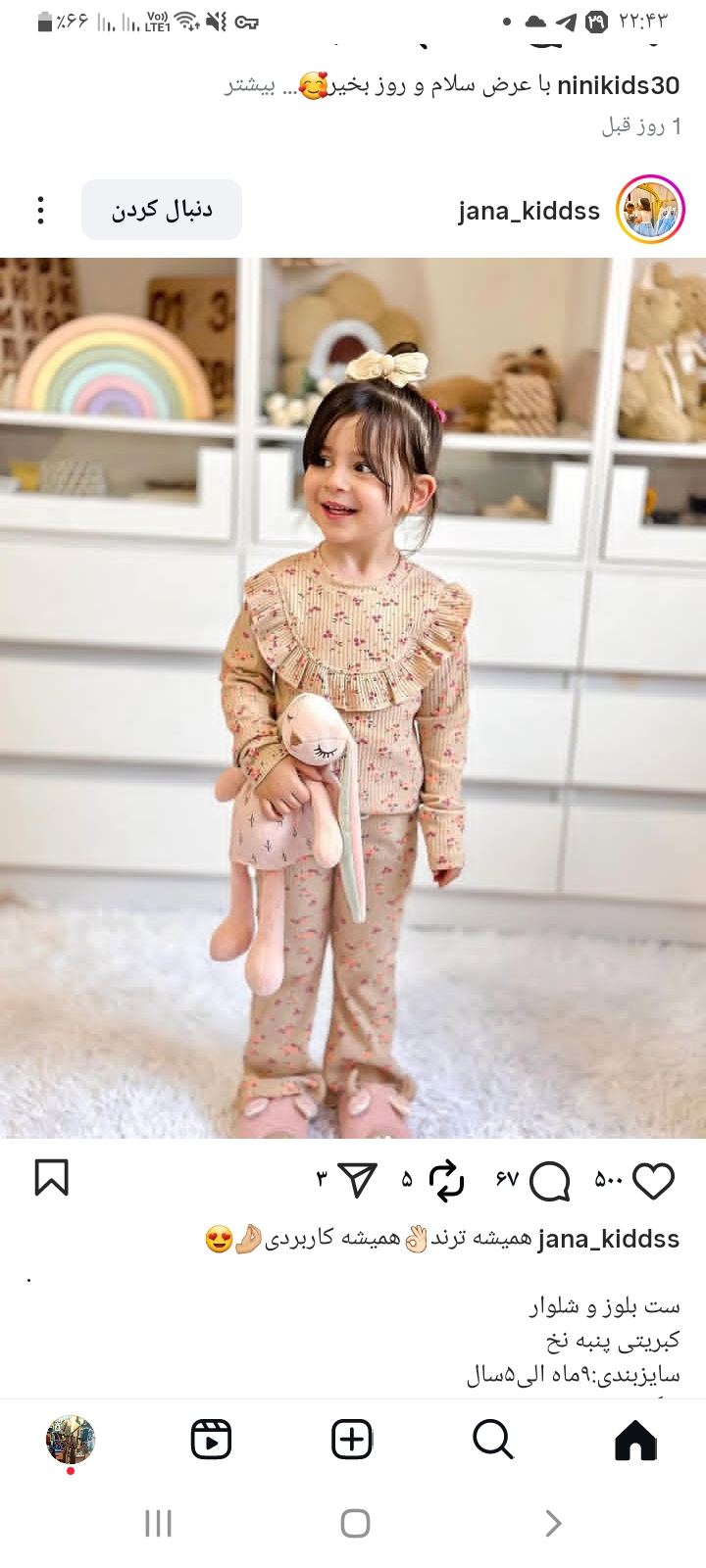 بلوز شلوار ریلی گل یاس دخترانه کد۱۹۸