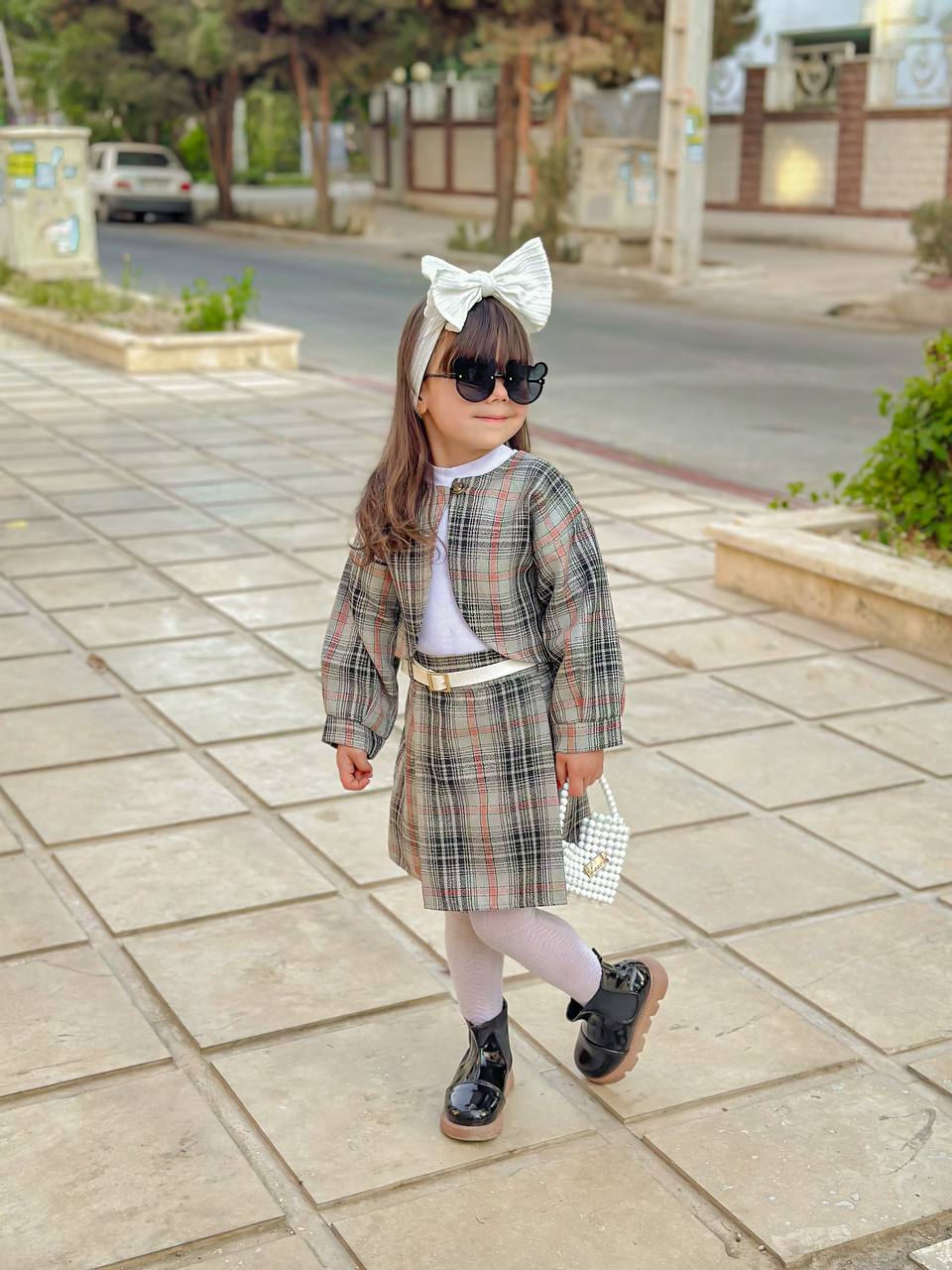 ست چهار تیکه شامل کت دامن تاب وکمربند دخترانه